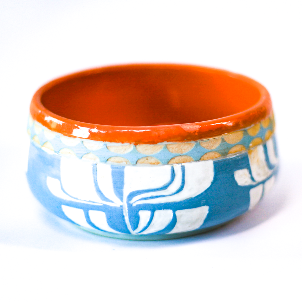 Expertly crafted with a stunning sunset-inspired design, the Mid-Century Sunset pot features a vibrant combination of blue and orange. Handmade with care and attention to detail, this custom piece adds a unique touch to any space. Elevate your decor with this eye-catching, midcentury-inspired pot.