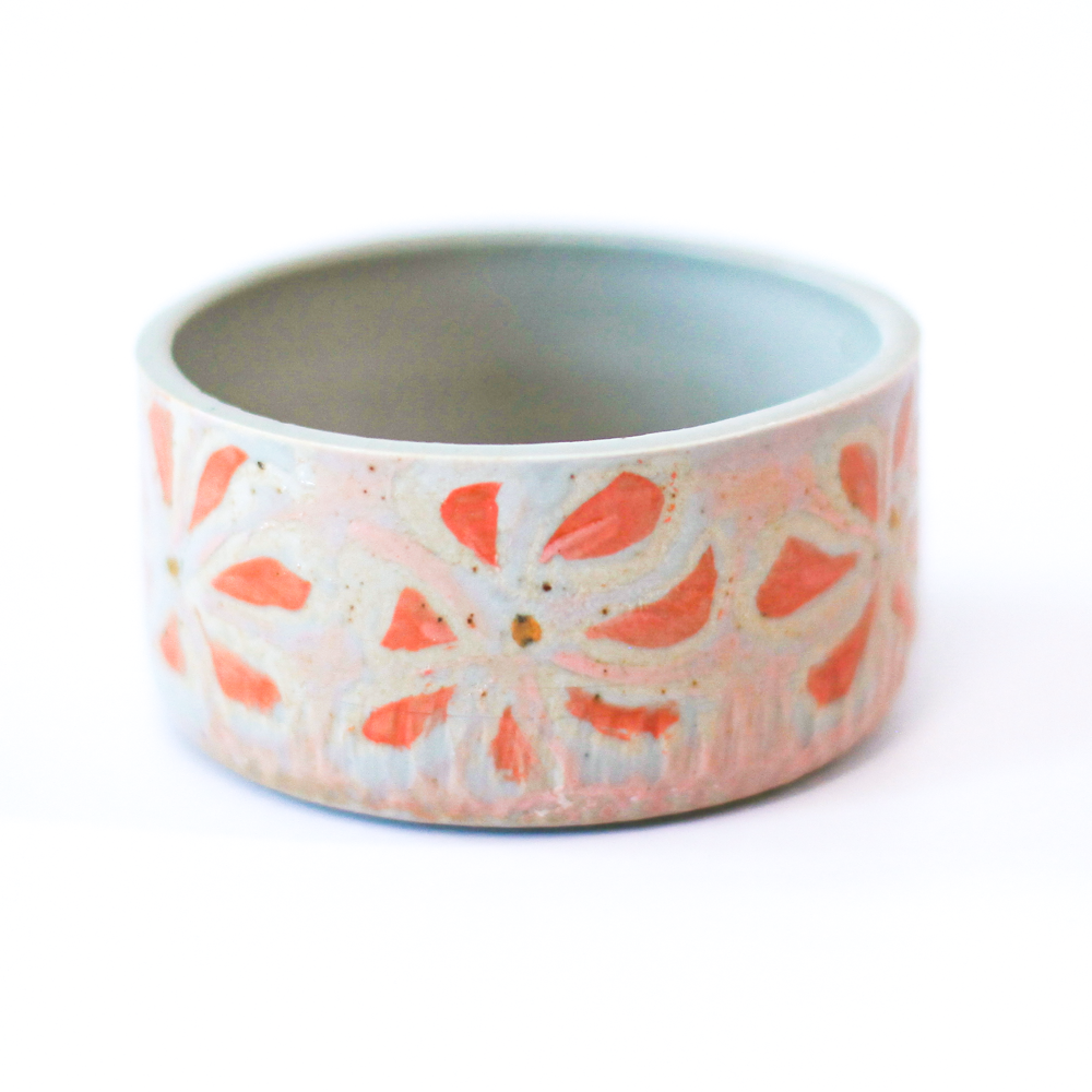 Add a pop of color to your home with Petals, our handmade ceramic art pot featuring vibrant orange flower petals. This unique piece not only adds a touch of whimsy to your decor, but also serves as a beautiful vessel for your plants. (Green thumbs not included!)