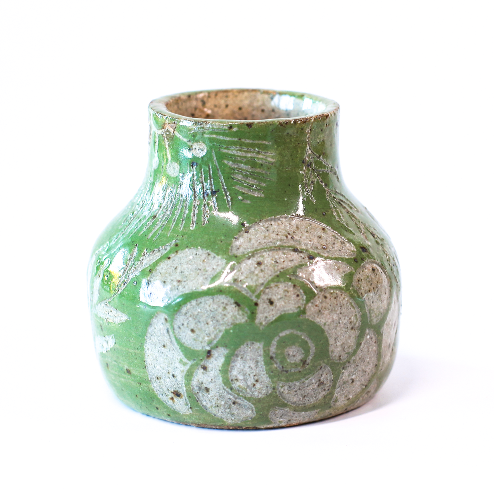 This one-of-a-kind Vintage Blossom vase boasts a stunning green hue, handmade craftsmanship, and a unique shape. Made of natural materials, it is not only visually appealing but also eco-friendly. Enhance any space with this amazing and elegant vase.